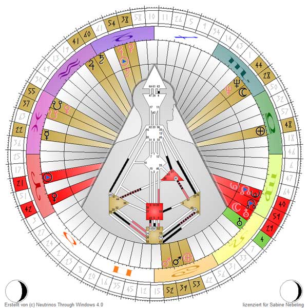 Durch das persönliche Geburtsdatum werden die Lebensthemen in jedem Chart individuell aktiviert. Sie geben Aufschluss über definierte Zentren (Farbig) und offene (Weiß). Oben siehst Du als Beispiel mein Chart.